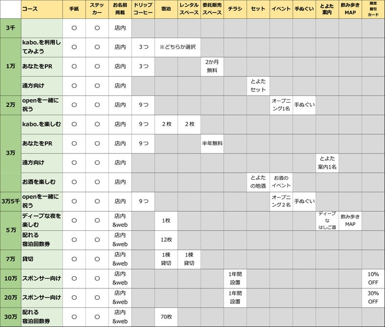 30,000円/①宿泊+レンタルスペース利用券/②委託販売半年無料券