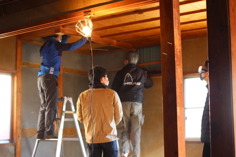 毎月1回ペースで開催しているイベント「みんなでワークショップ」。 1月の開催もたくさんの方がお手伝いにきてくださいました^^ シャワールームを入れるためにやはり高さが必要で せっせと2階の水回りとなる天井をこわす作業から。 1階でもせっせと壊す作業。 壊した後はそうじをして 別の作業は、下地となる床や壁にビスをしっかりと止めるつくる作業。 みんなで現場飯(お昼ごはん)を食べつつ キッズ達も助っ人で来てくれて古材の釘抜きをやってくれたり 屋根裏の埃の大掃除をして真っ黒になったり 色んな方に助けられてワークショップ終わりました^^ ワークショップをやってない日もほぼ毎日作業しています〇 日々のお手伝いさん大募集中! 是非、遊びに気がてらお手伝いしてってくださいねー!
