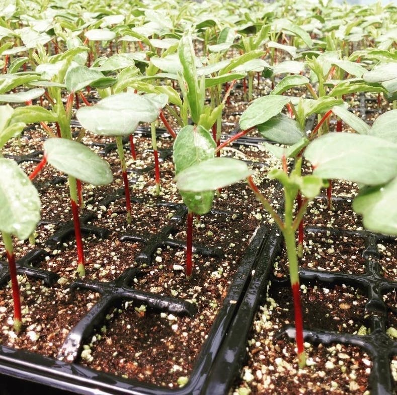 プランターの中で大きく育つのを待つローゼルの苗