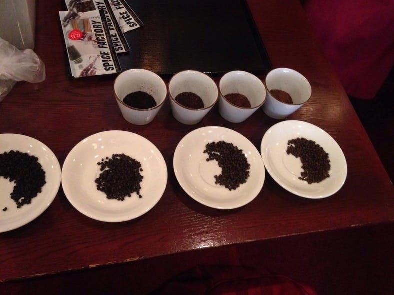 焙煎時間を少しずつ変えたローゼルのタネをブレンドし、風味の違いをひとつひとつ探っていきます。