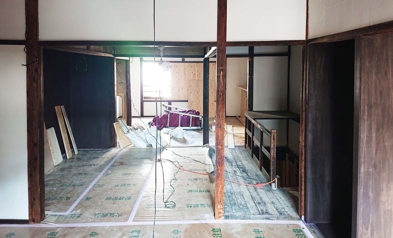 南北には開口部があり、ちょうど建具(窓)を修理する職人さんが作業に入るタイミングで、気持ちいい風が通り抜けていました。