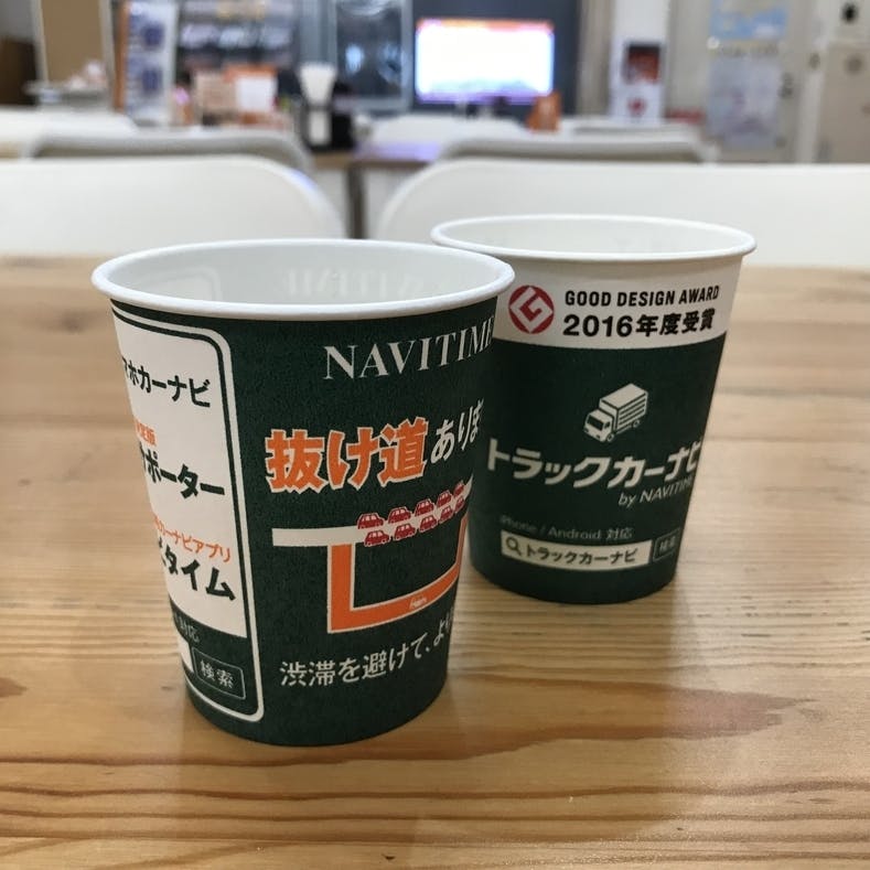行きの高速道路では、無料お茶サービスを利用しました。クラウドファンディングの「みんなのコーヒースポンサーコース(紙コップ広告配布)」と同じ仕組みです。こんな感じで駅西でコーヒーをタダだ飲めたらみんな嬉しいと思うんですよねー。