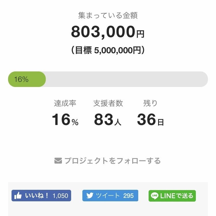 昨日から2人増え、80万円を超えました!あと2日で、19万7000円です。みなさまからご支援いただけるようにがんばります!