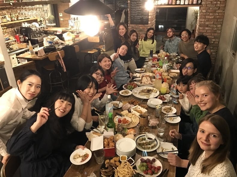 グローカルカフェ定休日の今日は、ポットラック(持ち寄り)で、3月で卒業するスタッフの送別会と新しいスタッフの歓迎会を行いました。