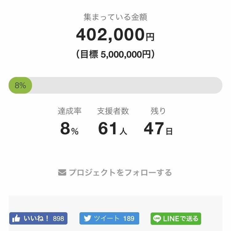 本日60人、40万円を超えました!まだ何日かしか経っていないのに、すでに追加で支援してくださった方が何人もいらっしゃて嬉しいです!ありがとうございます!