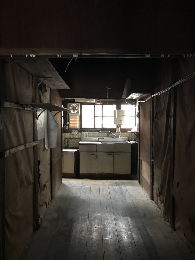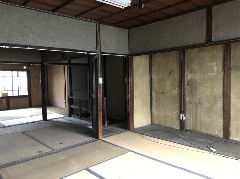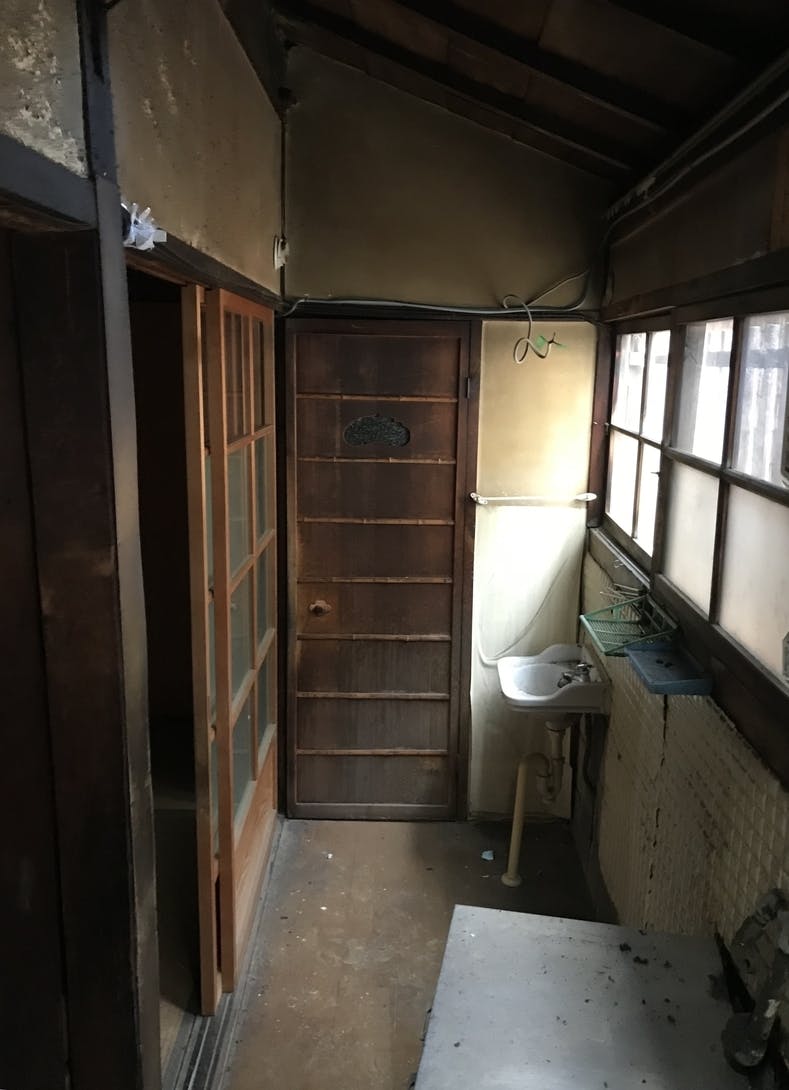 1階の一番奥にトイレ。客席から目に入らないように、もう一枚洗面所スペースの手前にドアができます。