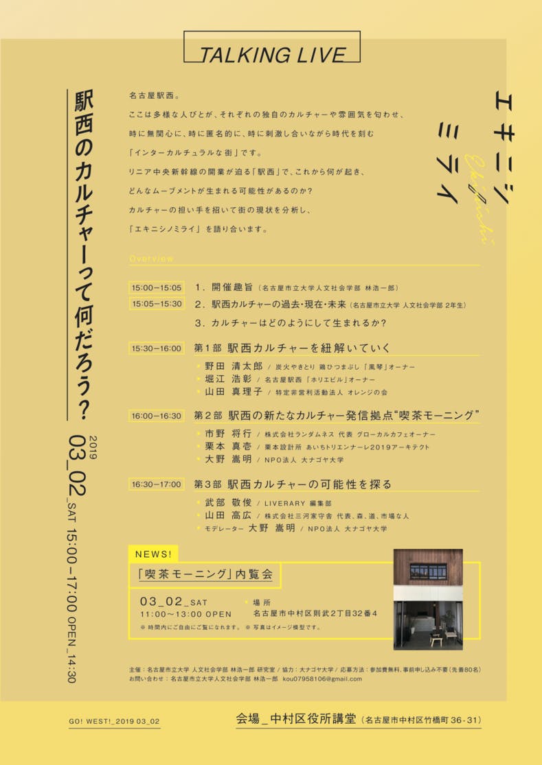 ただ、この規模(小さな喫茶店)にも関わらず、名古屋で活躍するイケてる(死語?)方々がこんなに関係するプロジェクトはそんなに多くないのでは?と思うと、駅西の歴史に残る事件になる可能性があります!(歴史的な一発屋にならないように運営をがんばります!)