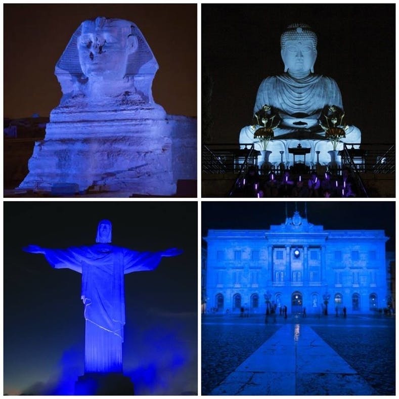 146カ国以上が参加するWHOが定めた「世界自閉症啓発デー」(毎年4月2日)に各地のシンボルを自閉症者が癒される色と言われる「青」にライトアップする啓発キャンペーン「Light It Up Blue」。