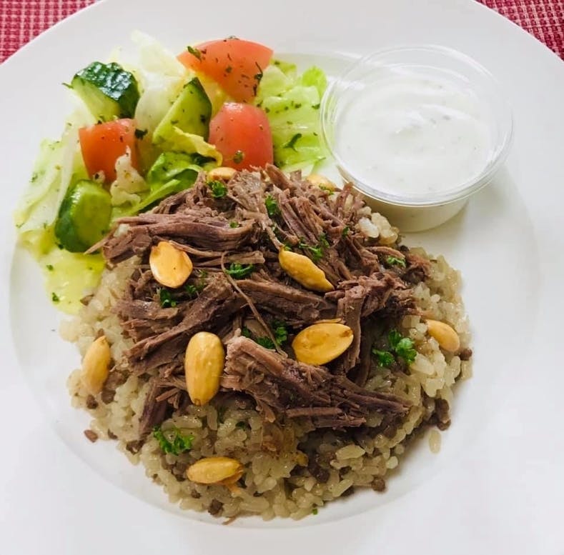 ・牛肉又は羊肉とアーモンドのピラフ ヨーグルトソースはお好みで/レバノンドレッシングのサラダ