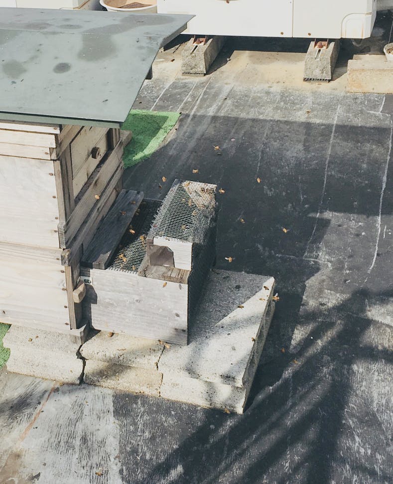 こちらが屋上で飼われている観音はちみつを作ってくれているみつばちたち。