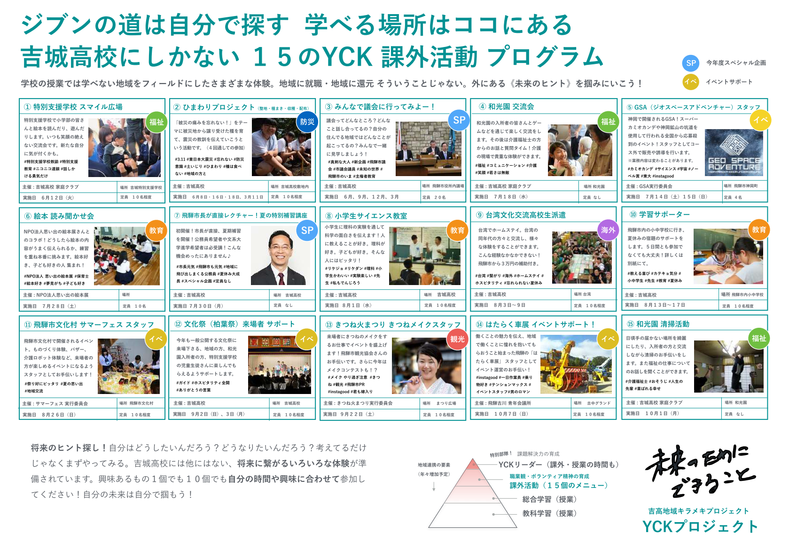 また岐阜県飛騨市の岐阜県立吉城高校では、地域課題解決型キャリア教育「YCK(吉高地域キラメキ) プロジェクト」に非常に力を入れて取り組んでいます。同校のキャリア教育コーディネーターとして、飛騨市民の関口祐太さん(株式会社Edo代表取締役)・盤所杏子さん(同社副代表)がプログラム設計から関わっており、吉城高校の「実社会と連携した学びづくり」は昨年度、文部科学大臣表彰を受賞しております。