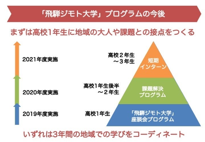 すでに2021年度の法人化を見据え、継続的かつ発展的なプログラム設計を考えています。そして高校側の指導要領が新しくなる令和4年度の新入生には、3年間のステップアッププログラムを提供できるように、大人側が覚悟をもって本気でこの事業に挑んでいきます。