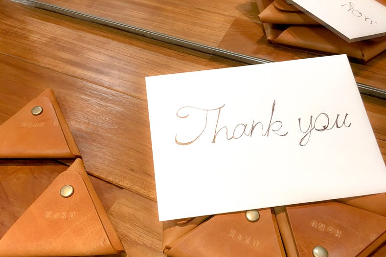 上記前田手書きのお手紙に加え、先着10名様限り、革作家さん手作りの「HaKU」ネーム入り本革コインケースもプレゼント致します!
