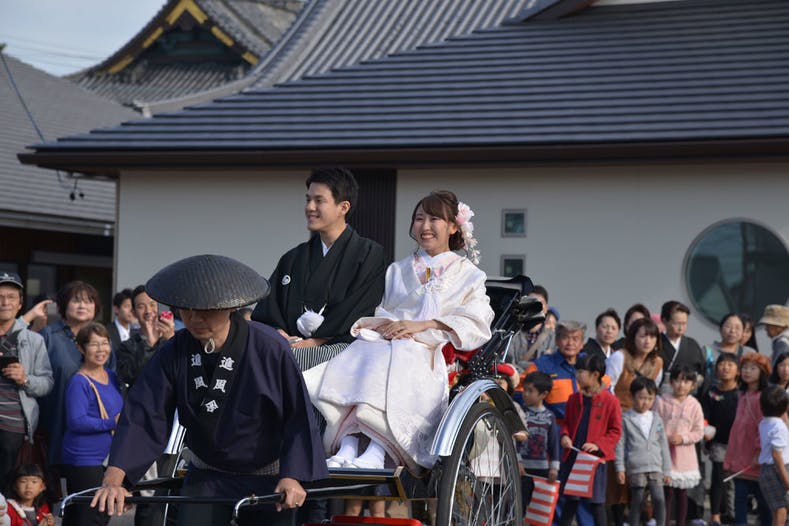 和風の結婚式やパレードは一身田の町並みにとてもよく合います。