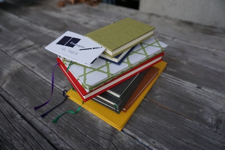 本文用紙(中の紙)に万年筆で書き味の良い紙を用い、表紙・見返し等をたくさんの中よりお選びいただけるセミオーダーのハードカバーのものがメインです。