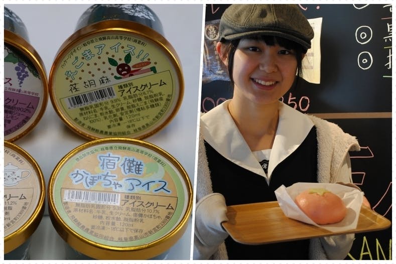 ・アイスクリーム:10セット限定リターンに含まれています。こちらは、飛騨酪農農業協同組合様とコラボ開発した商品で、宿儺かぼちゃ・えごま・紅茶を使ったアイスクリーム(3個セット)となります。どの味も地元産で美味しいのですが、おすすめは、特産の「宿儺(すくな)かぼちゃ」味のアイスクリームです。着色料、香料なしの無添加で、宿儺カボチャのペーストを約15%入れた。クリのような甘みが特徴。