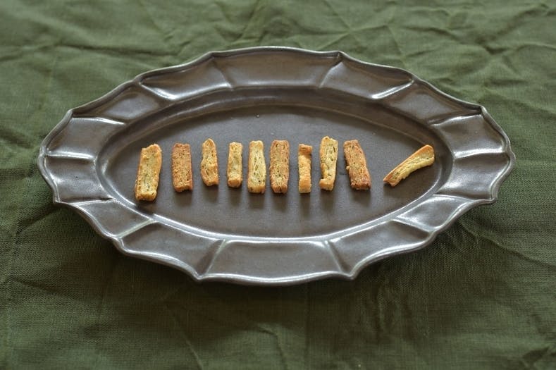 名前の通り塩味のクッキー。バジルを練りこんだものと、ブラックペッパーを練りこんだものをお届けします。