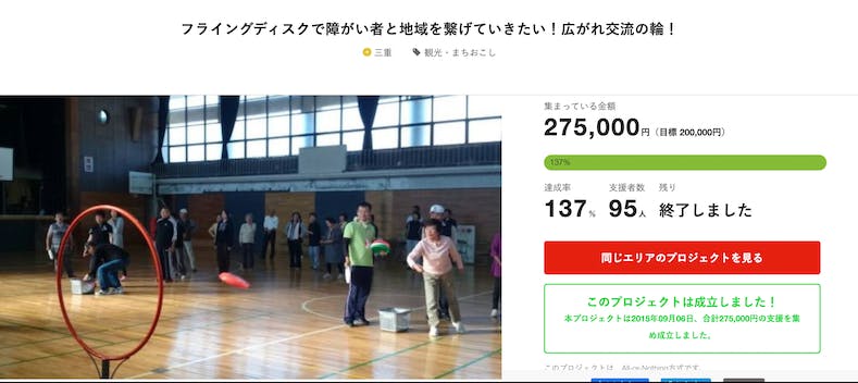 56プロジェクト中、最も支援者数が多いのがフライングディスクプロジェクトで95人です。