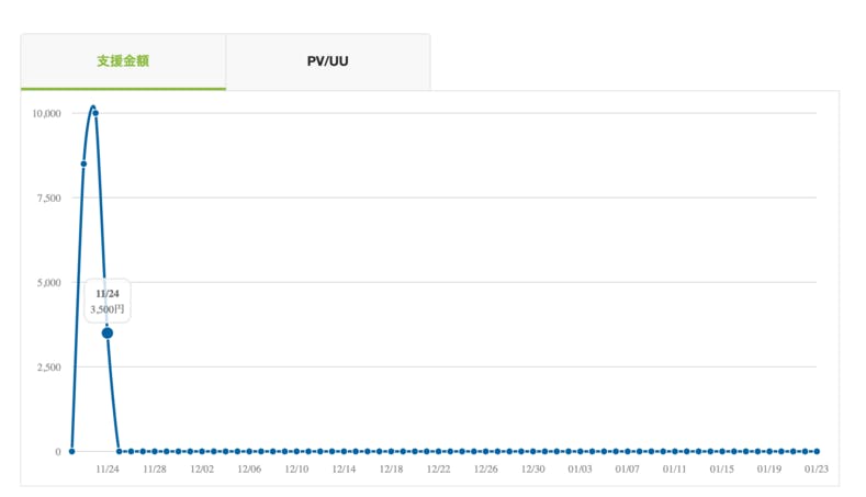 11/21〜11/24の4日間では147人が見てくれていますが、支援者数は6人と4%程度しかありません。
