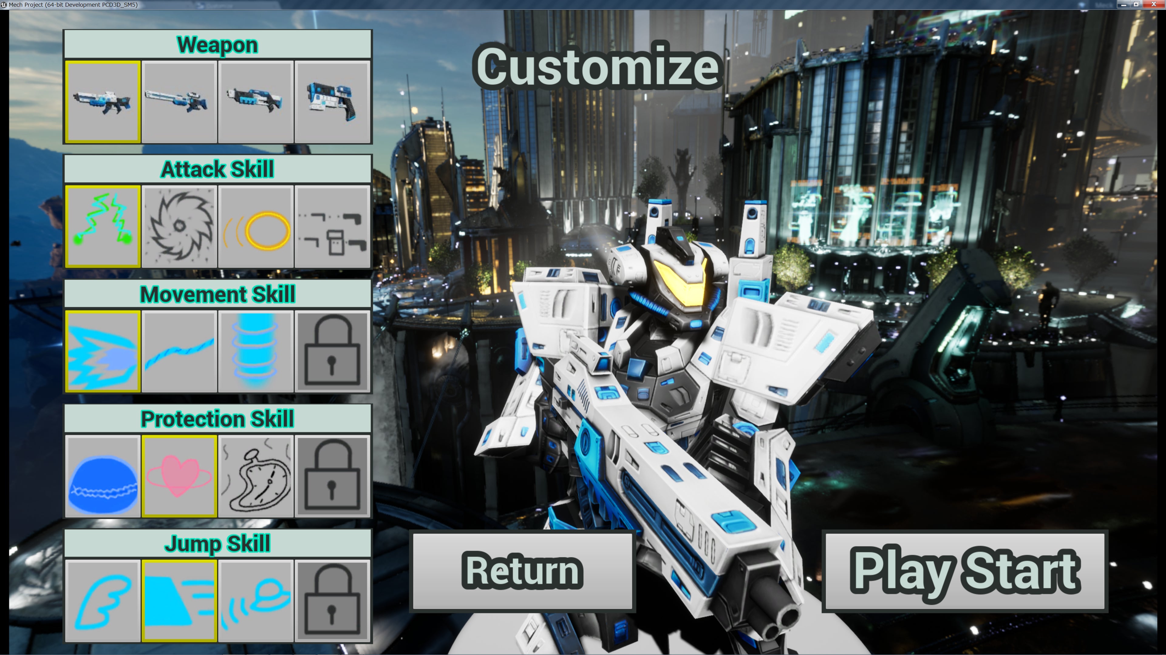 タイトル画面 → ステージセレクト → カスタマイズ画面