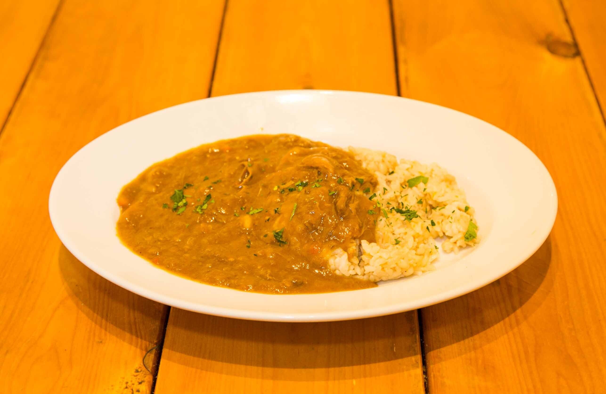 ボーンブロスと牛すじで6時間煮込んだ熟成カレーです。香味野菜やフルーツをブレンドし、辛さは控め。お子様から大人まで楽しめる親しみやすいカレーとなっております。