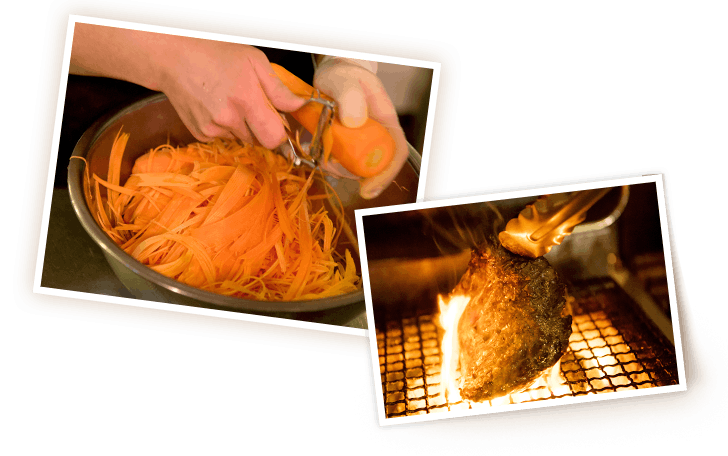 とくに野菜は契約農家様より、農薬を一切使わず、肥料も籾殻や米ぬかなどを発酵させたものを使った野菜を仕入れております。旬の野菜をふんだんに使ったサラダ・料理は好評を頂いております。