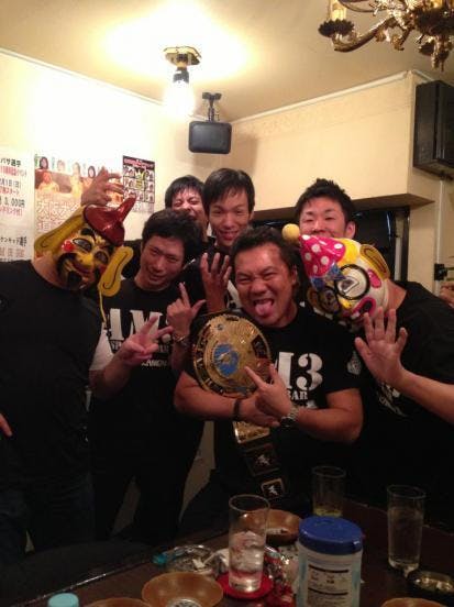 私とプロレス好きの仲間達は、いつも大阪プロレスのくいしんぼう仮面さんが運営しているお店で、くいしんぼう仮面さんとプロレスについて語りあっています。