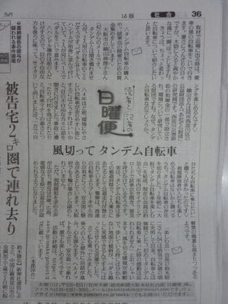 読売新聞朝刊(8/3)の「読者と記者の日曜便」でタンデム自転車のこと、資金集めのことを紹介していただきました!