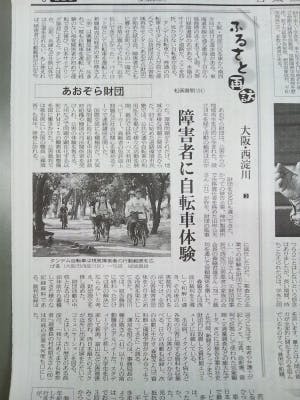 今回は大阪でタンデム自転車を楽しむ会の事務局である「あおぞら財団」がテーマで、国際交流や資料館の活動とあわせて紹介されています。