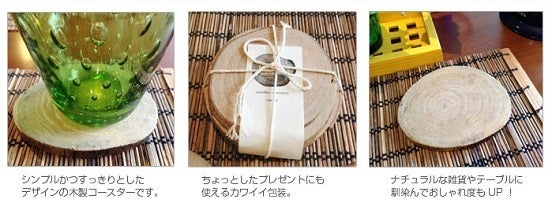 起案者「森本」が運営しているセレクトショップBecauseで販売している九州産の楠を使った天然木コースター。それぞれに違った木の表情と風合い、木肌のぬくもりが感じられます。コースターを重ねると、なんとも言えない表情に。収納の時も視覚で楽しませてくれます。本物の木のコースターにお気に入りのグラスを置いて美味しい飲み物をどうぞ。