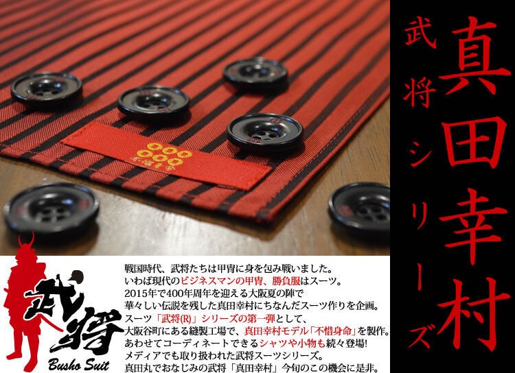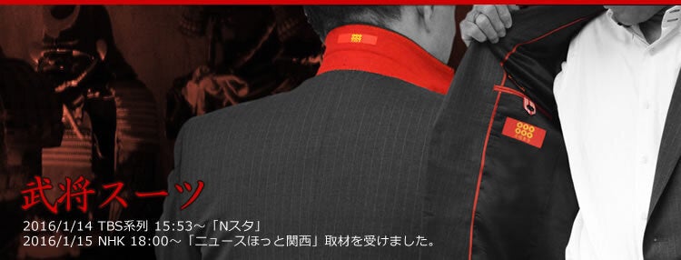 スタートは大阪谷町にある弊社で「真田幸村スーツ」です。