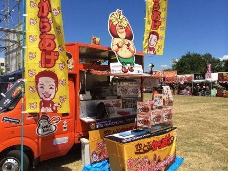 7、西栄寺中ホール お寺駐車場がアートギャラリー&芸人やミュージシャンと一緒にUstream放送局に早変わり、そら飛ぶから揚げ号が目印!