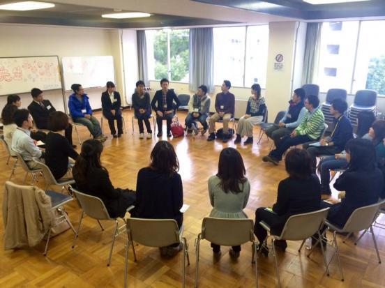 ▲若手教員と、4月から教壇に立つ人たちの学び合いセミナーの様子