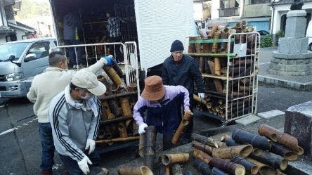 "竹楽"が終わった翌日11月24日午前に地元ボランティアのみなさんのご協力を頂いて竹4000本のトラックへの積み込みを行いました。
