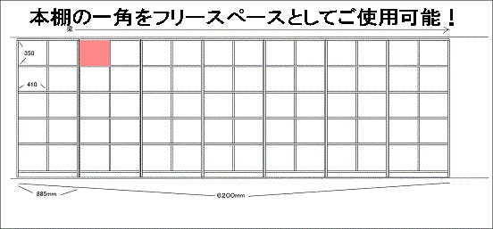 まちライブラリー内の本棚(写真の)一角をご提供。趣味のものを飾ったり、販売している雑貨やバッグを展示したり、本を置いたり。使い方はなんでもあり。ご自由にお使いください。