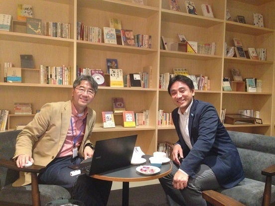 ▲左:まちライブラリー創設者の礒井純充さん 右:起案者の川辺友之