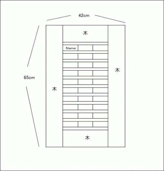 木目調のプレートに、アルファベットで活版印刷にて支援者の方の名前を入れ、壁の一部に貼付る予定です。