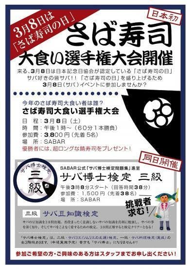 3月8日は日本記念日協会認定「鯖の日」!お寿司体験イベント「サバ祭2015!」とは?
