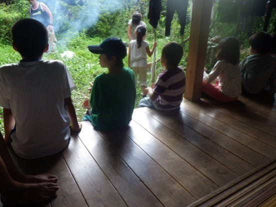 子どもたちにいろいろな経験を通して「生きていくための力」を育ててほしいと考え、日々いろいろな活動に取り組む中で、夏には初めてのサマーキャンプを開催しました。古民家に泊まって川遊びをしたり、炊飯に必要な薪を集めてたき火をしたりと普段の都会の生活ではできない体験をたくさんしてきました。少し高い岩場から川に飛び込んでみたり、一人でカヌーを漕いだり、子どもたちが自信をつけたイベントとなりました。