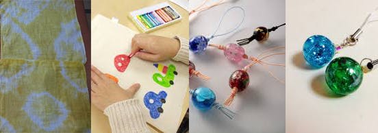 ※作品は、手作りキャンドル・とんぼ玉・クラックビー玉のストラップ・手作り入浴剤・子どもたちのイラスト入りエコバック・ターメリックorたまねぎ染めハンカチの中から数点をお送りします。