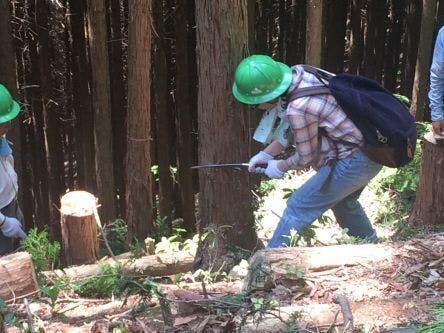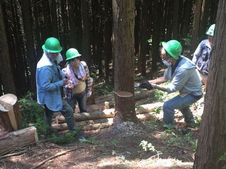 午前中ブナ林の見学をして、午後から間伐体験です。