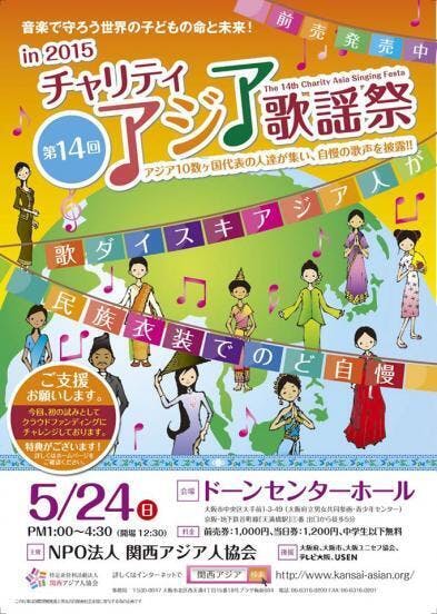 「音楽で守ろう世界の子どもの命と未来」ユニセフ支援となります。日本在住のアジア人がその国籍や地域を超えて一同に集まり、歌や舞踊を民族衣装で競い合う文化交流イベントです。