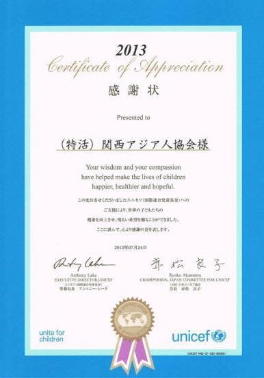 第6回「子どもたちにとどけよう生きる力を! キャンペーン(ユニセフ)」支援