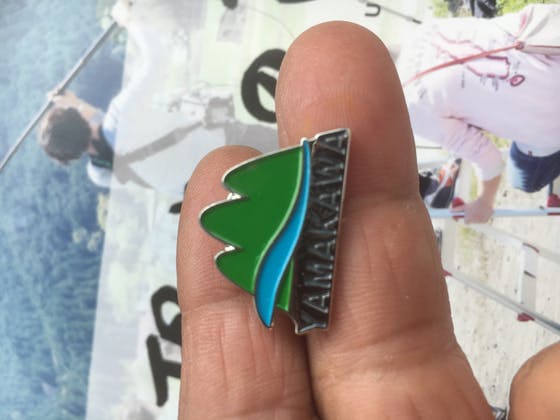 代表特権で監督からもらったこのピンバッチ。もちろん山と川は故郷丹波の山河。