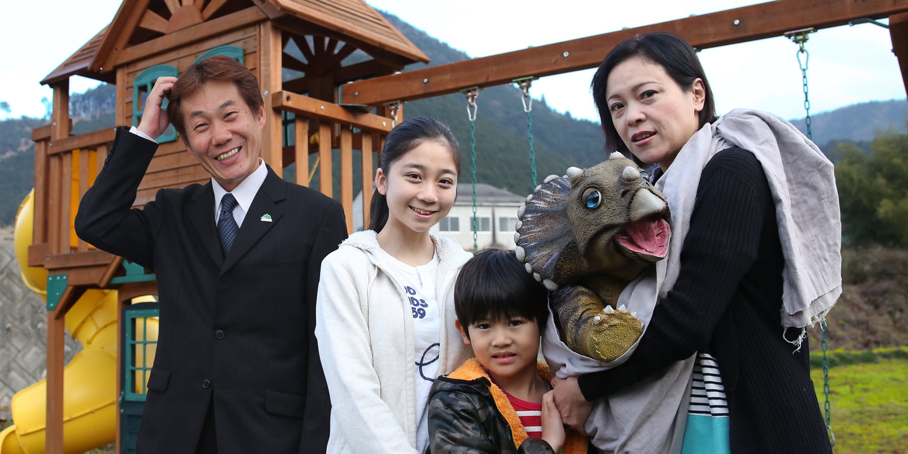 同上映会では、映画出演者である主演のとみずみほ、澤田敏行、そして東京から芳野友美 という豪華な役者陣が来場、監督の近兼拓史と共に全国劇場の舞台挨拶を行い大人気とな った恐竜ウズラもやってきて、丹波市民の皆さんにご報告と舞台挨拶を行います。
