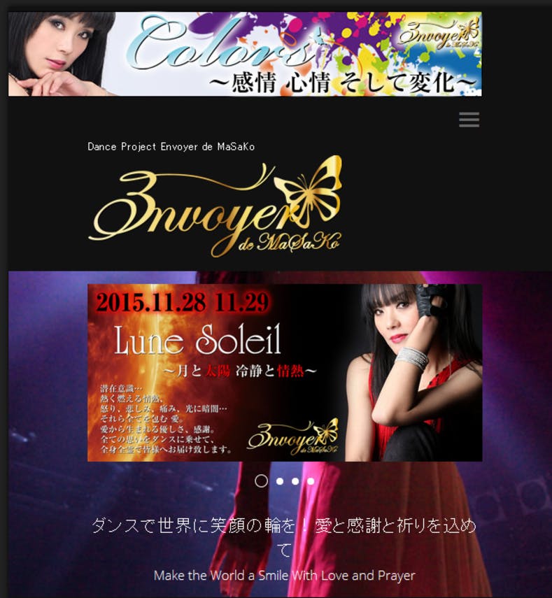 【団体名】ダンスプロジェクトEnvoyer de MaSaKo (アンボワイエ・ドゥ・マサコ) 【代表者】MaSaKo 【HP】http://www.envoyer-de-masako.com/ 【facebook】https://www.facebook.com/Envoyer.de.MaSaKo/ 【Blog】http://ameblo.jp/envoyerdemasako/ 【PV】https://www.youtube.com/watch?v=KIHPYxEebmM 【YouTube】https://www.youtube.com/user/EnvoyerDeMaSaKo/videos