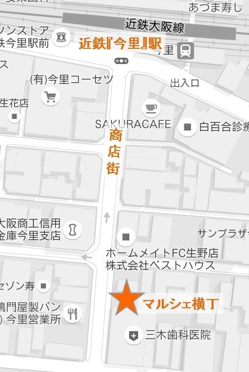 マルシェ横丁のロケーション、地図、図面を掲載します。