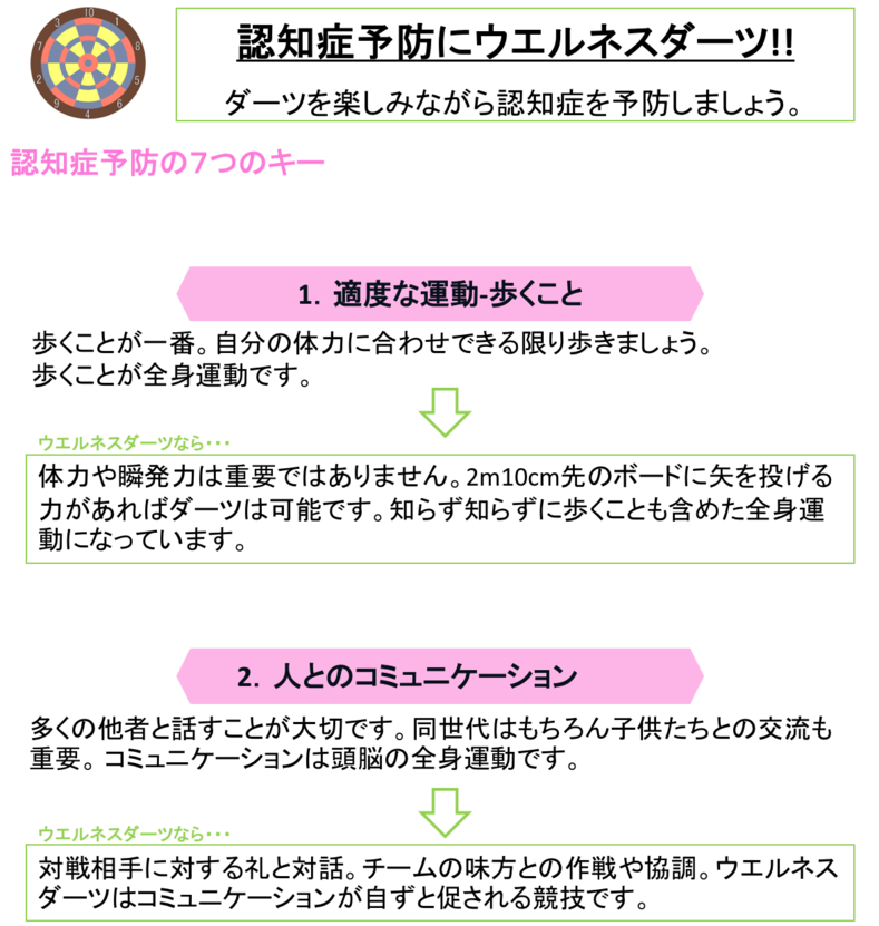 認知症の方が、またご家族の方がよりよい生活をおくる手助けができるこのウエルネスダーツの普及のご支援、よろしくお願いいたします。