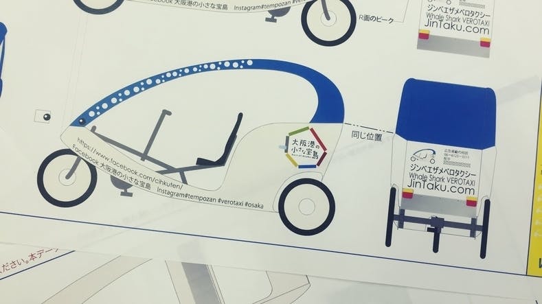 そもそも、ベロタクシー自体は、車体全体を広告等として走らせることで広報効果を高めていますので、車体デザインというのはその時々で変わるんですね。でもこちらのベロタクシーは、築港天保山エリア、海遊館がある港町を走る自転車タクシーということで、このジンベエザメデザインの車体で走ることが前提となっています。