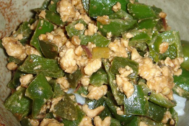 ▲ピーマンと鶏ひき肉を炒めて和えて丼に